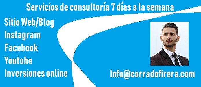 Si no puedes entender por ti mismo cuál es tu camino porque no conoce bien los mecanismos de la web y / o no sabes planificar tu estrategia en línea, sepas que estoy completamente disponible para ayudarte y lograr tu objetivo, ponte en contacto conmingo con el siguiente correo electrónico: info@corradofirera.com.