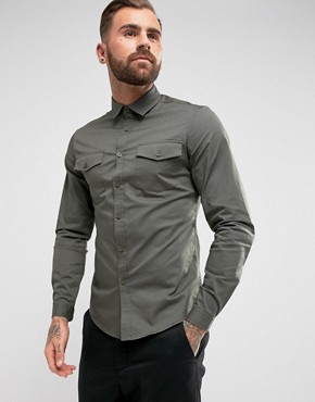 2) ASOS – Camicia slim kaki con due tasche